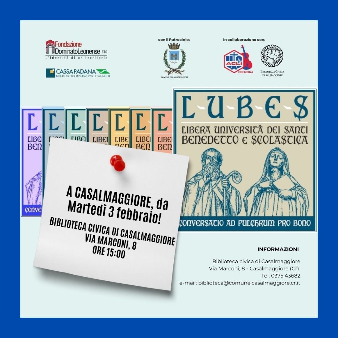 A partire da martedì 3 febbraio 2026, presso la Biblioteca di Casalmaggiore, prenderà il via un ciclo di 10 incontri della durata di circa un’ora, con cadenza quindicinale, che affronteranno temi che spaziano dalla storia locale all’arte, dalla filosofia alla musica e all’attualità. Gli incontri saranno condotti da docenti universitari, ricercatori ed esperti, secondo il modello formativo consolidato della LUBES.